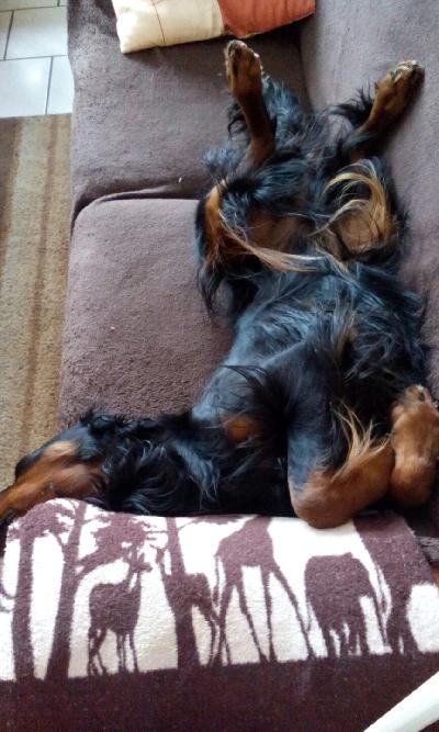 Gott sei Dank geht es Jack Daniels schon wieder besser und er lümmelt sich wieder auf der Coach. Nur Spazierengehen ist nur an der Leine und nur für kurze Zeit angesagt.